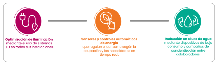 Gentera está comprometida con la optimización de sus consumos de energía y agua en sus oficinas y centros de operación, promoviendo prácticas de eficiencia energética y reducción de desperdicio de recursos. Además, la empresa fomenta el uso de equipos y tecnologías que permitan disminuir el consumo de energía, contribuyendo a la reducción de su huella de carbono. Entre estas acciones destacan: