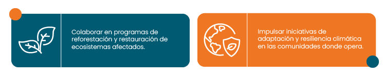 La empresa promueve una gestión responsable de los residuos generados, adoptando principios de economía circular que permiten reducir, reutilizar y reciclar materiales dentro de sus operaciones. Estas prácticas están enfocadas en minimizar la generación de residuos, reciclar materiales cuando sea posible y eliminar el uso de plásticos de un solo uso en sus oficinas y eventos corporativos. Las acciones destacadas incluyen: